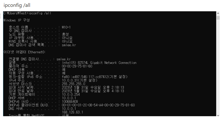 확인은 다음과 같이 한다. (가상머신 window10 에서)