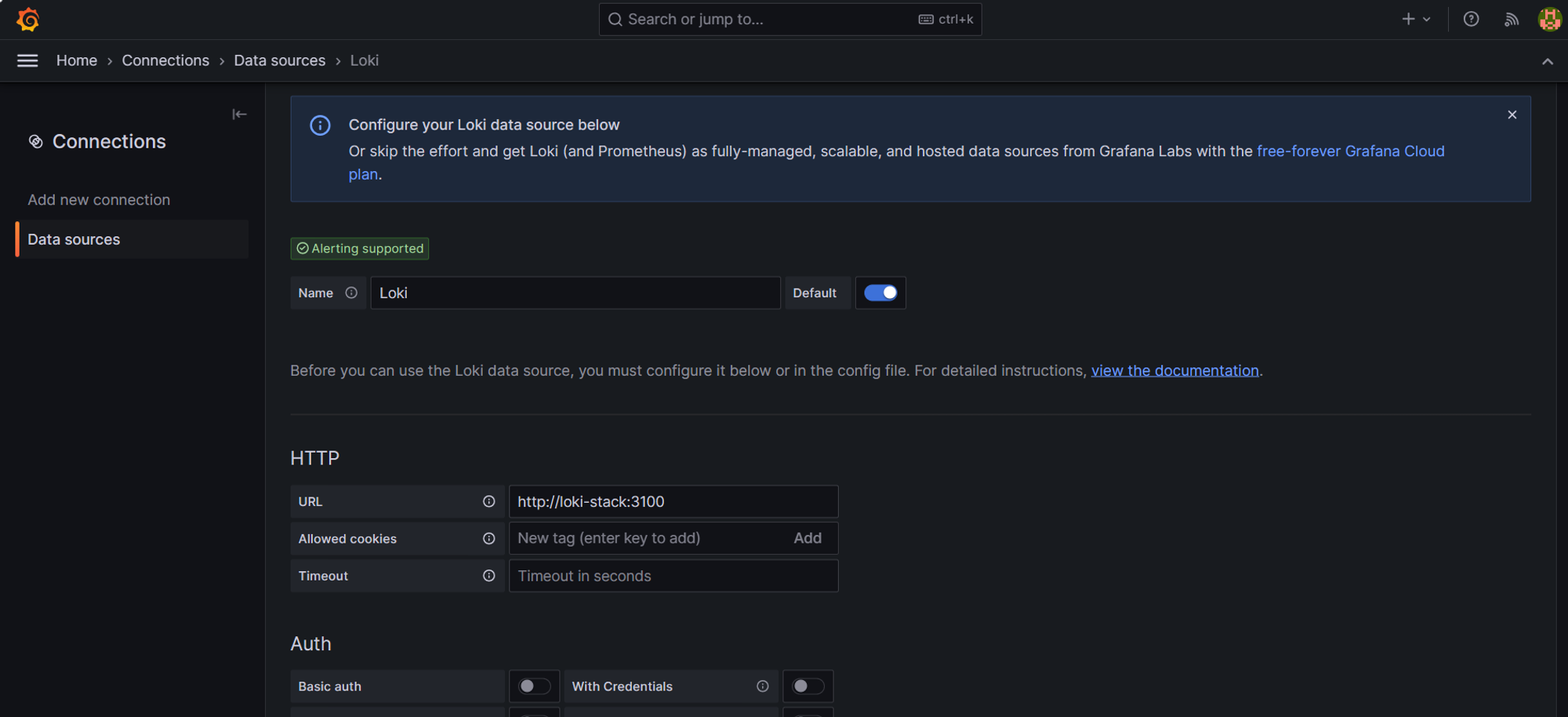 url에는 url에는 http://<service명>:3100을 입력한다.