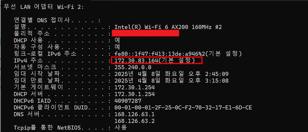 ▲ 이때 서버 주소는 DHCP 서버의 주소이다.